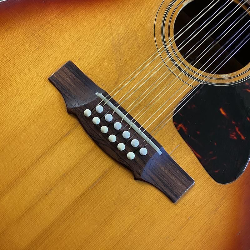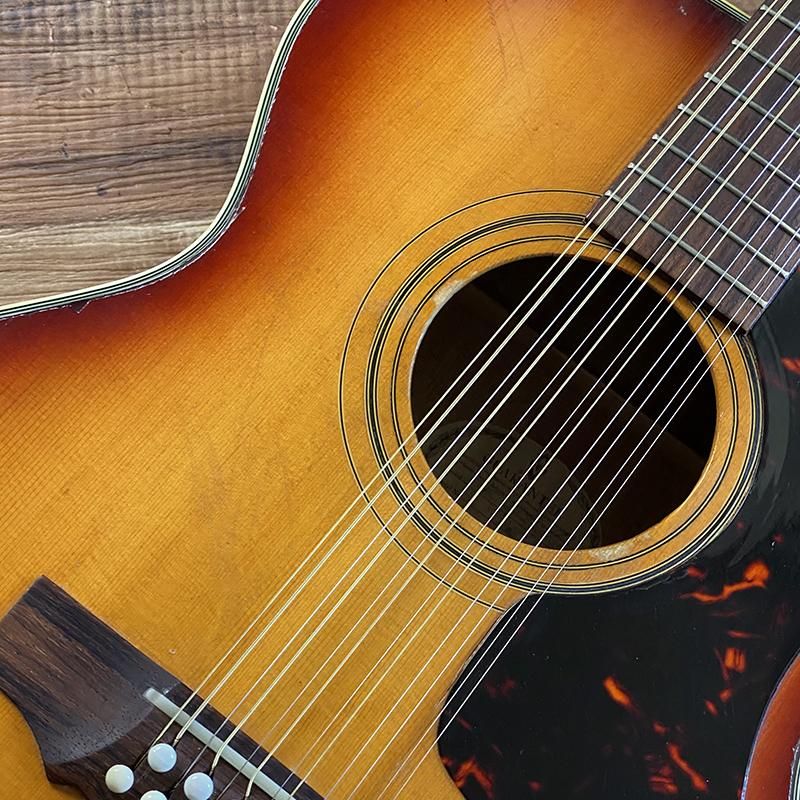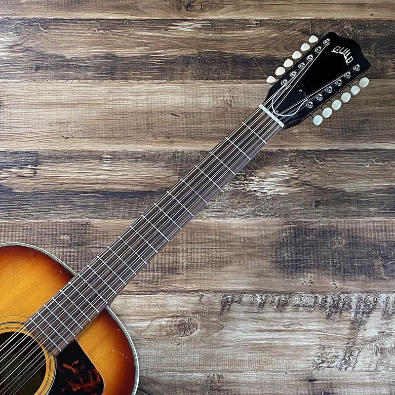 1952年に設立され、多くの名曲や名演を生み出してきた3大アメリカンアコースティックギターブランドの一つと称されるギルドのニュージャージー州ホーボーケン工場期の12弦モデルとなり、スプルーストップ、マホガニーサイド&バックの16インチジャンボシェイプボディに、25 1/2ロングスケールのローズウッド指板&マホガニーネックで約48mmのナット幅を持つワイドネックのスペックを持ちます。