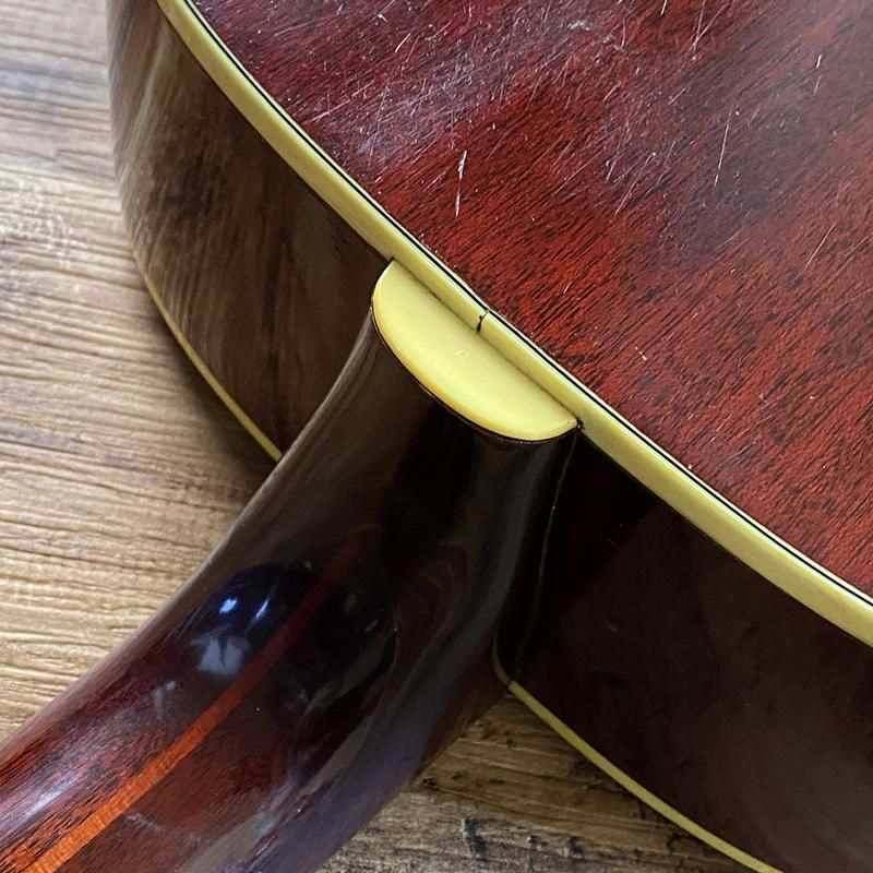 しっかりと弾かれてきた個体のためサウンドホール周りのピック傷やネック裏や脇の塗装剥がれ等無数の傷や経年変化によるウェザーチェックが見られますが、入荷後全体調整を行い、セットアップを行っていますので安心してご使用いただける1本です。