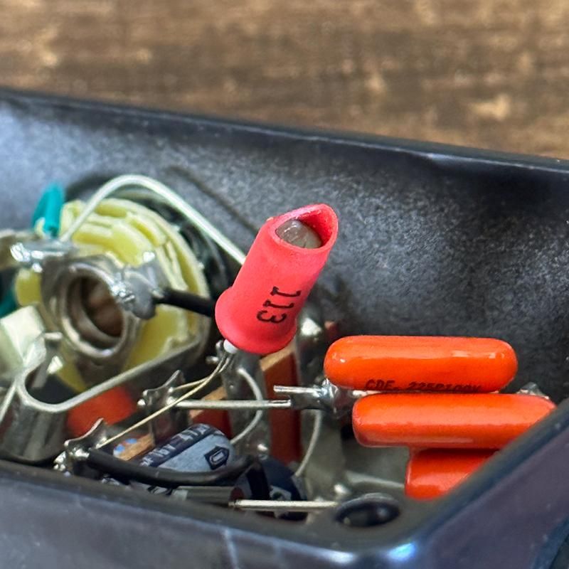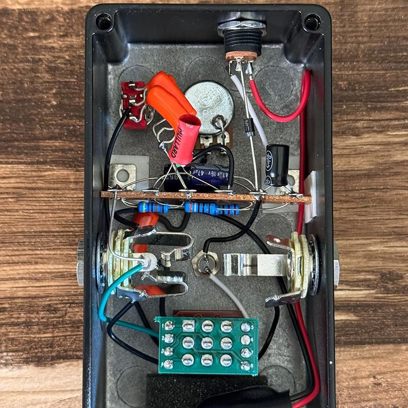 ゲルマニウム・トランジスタにはOC44のミリタリースペックとなる1960年代初期のMullard GET113 Red-Sleeveを搭載し、特定の周波数をプッシュするトレブルブースターとしてだけではなく、ミニトグルスイッチによりMID(フルレンジミッ土ブースト)、LOW(ローレンジブースト)の切り替えを行え、トゥルーバイパススイッチも採用してます。