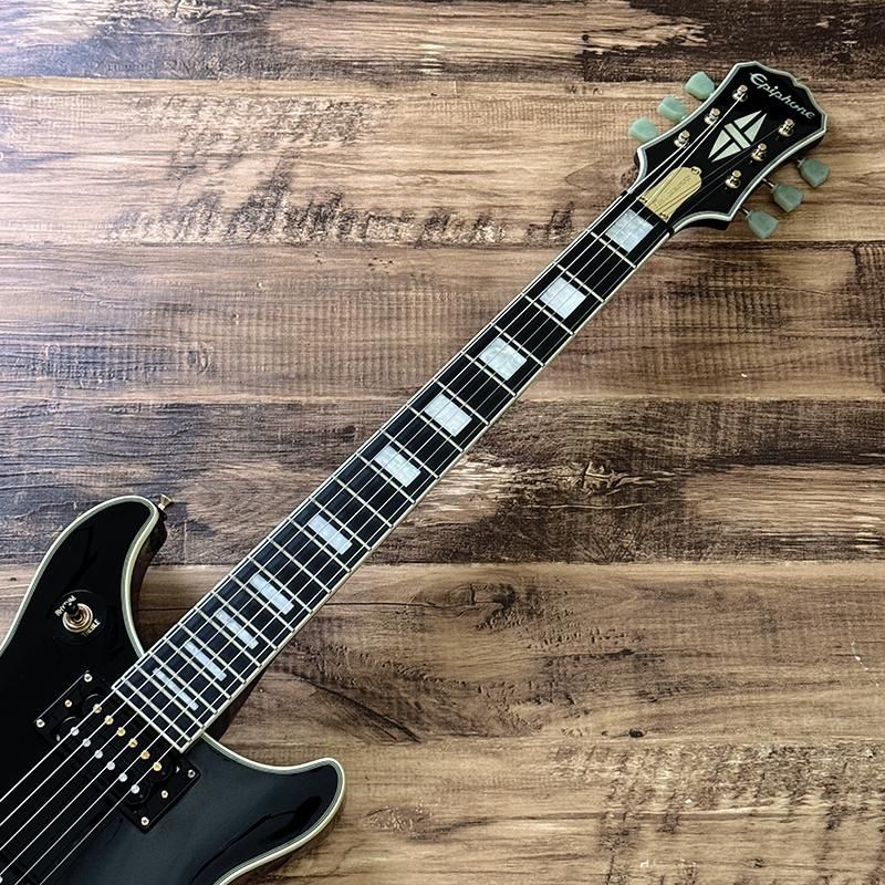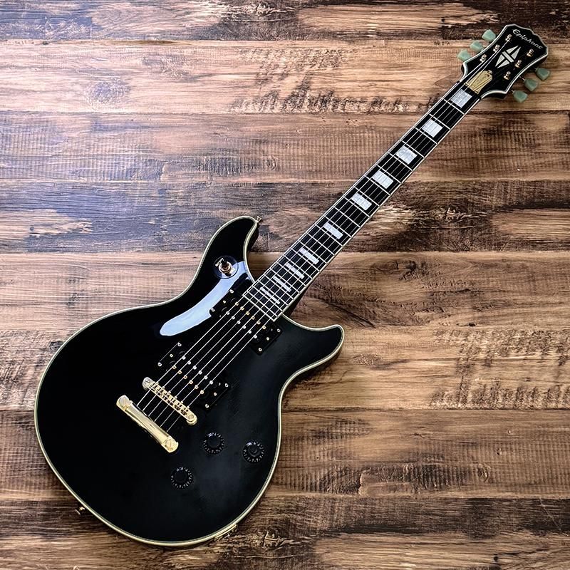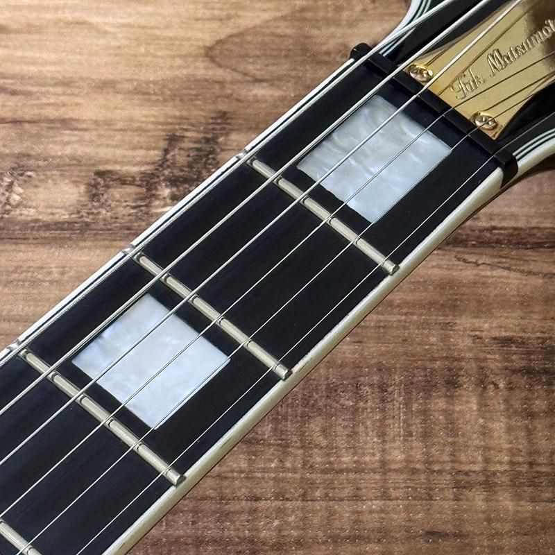 エボニー指板にアップデートされた2014年製再発初年度のエピフォン製TAK松本“ダブルカッタウェイ”モデルのCustom Ebony。