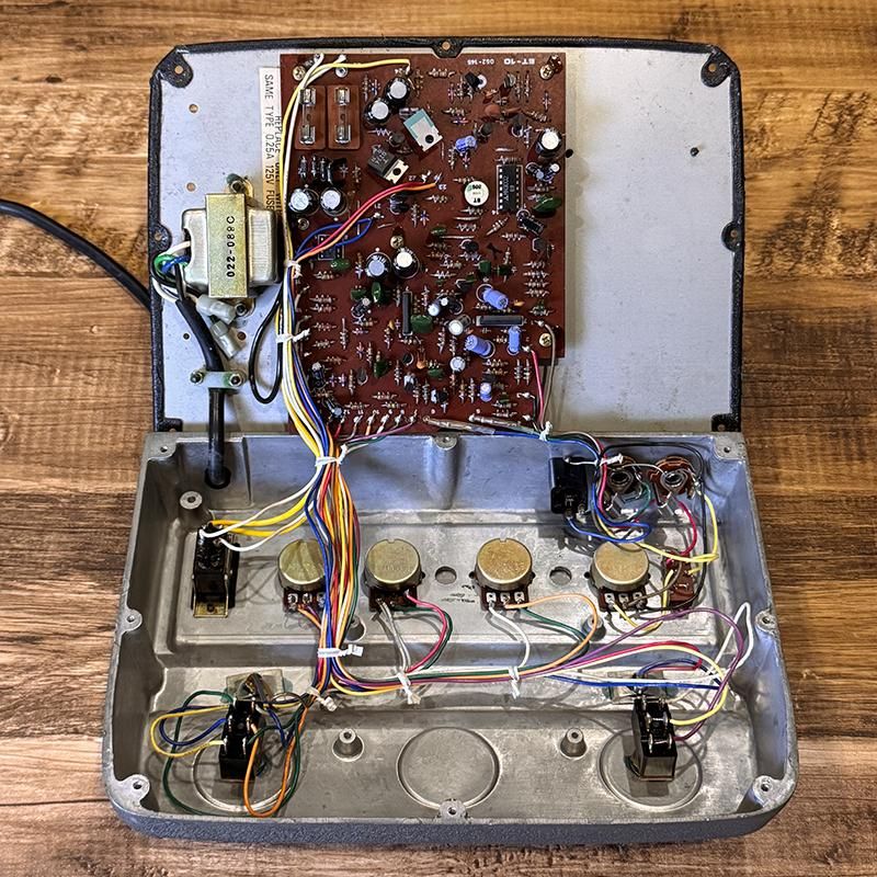 かなり使い込まれてきた個体のためLevel、chorus、vibrato rateのコントロールノブエッジ部に一部割れが見られますがガリやスイッチ不良はなく動作は良好で、特にファットなトーンが特徴と言える貴重な1979年製の1台です。