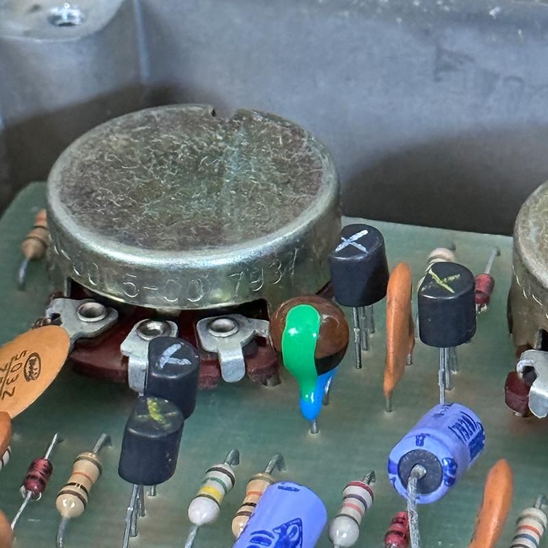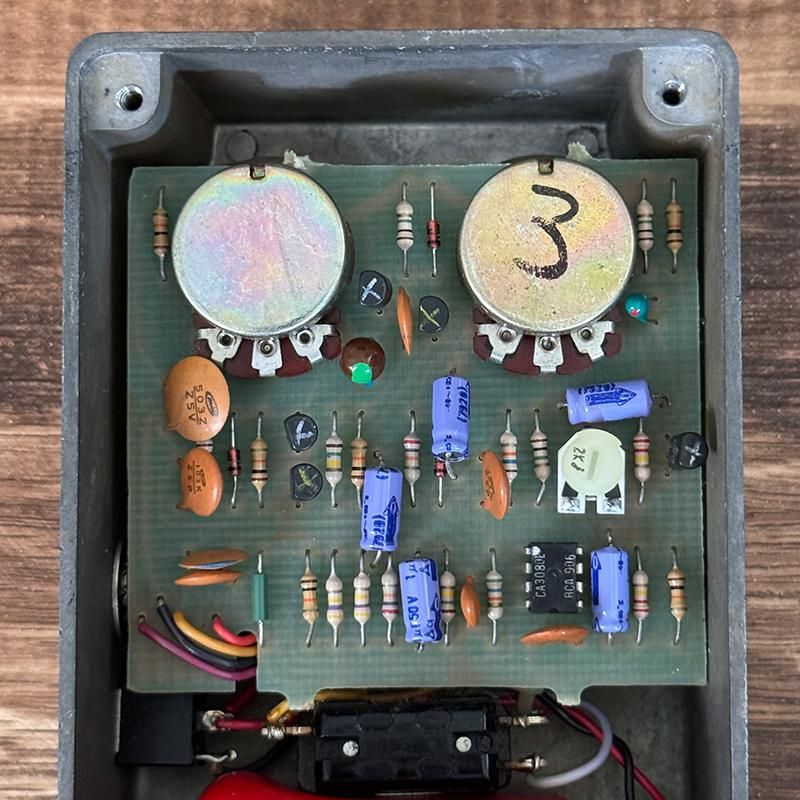MXR Dyna Compと並びペダル型コンプレッサーの代名詞の一つと言える1978年頃発売のROSS COMPRESSORの初年度仕様となるOUTPUT表記からLEVEL表記へと変更され、フットスイッチ下のCOMPRESSOR文字も1978年製よりも小さく表記された外観を持ち、1979年37週ポットと1979年製RCA 3080Eオペアンプに2SC1849トランジスタを使用したオリジナルUSメイドの最終期となる1979-80年製の個体となります。