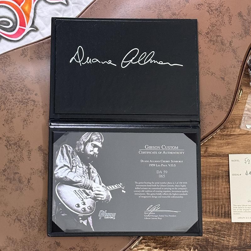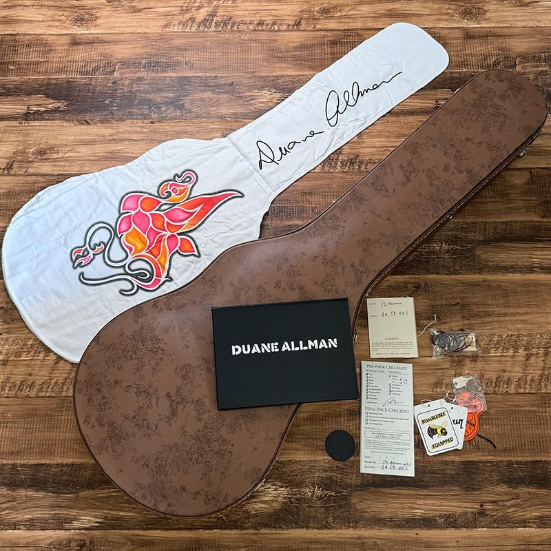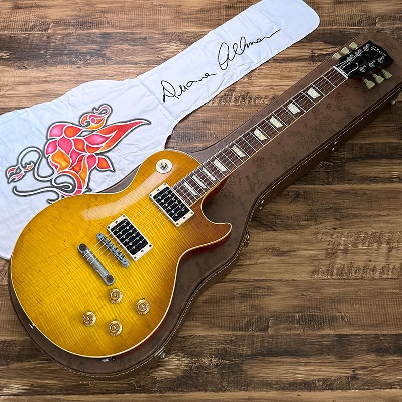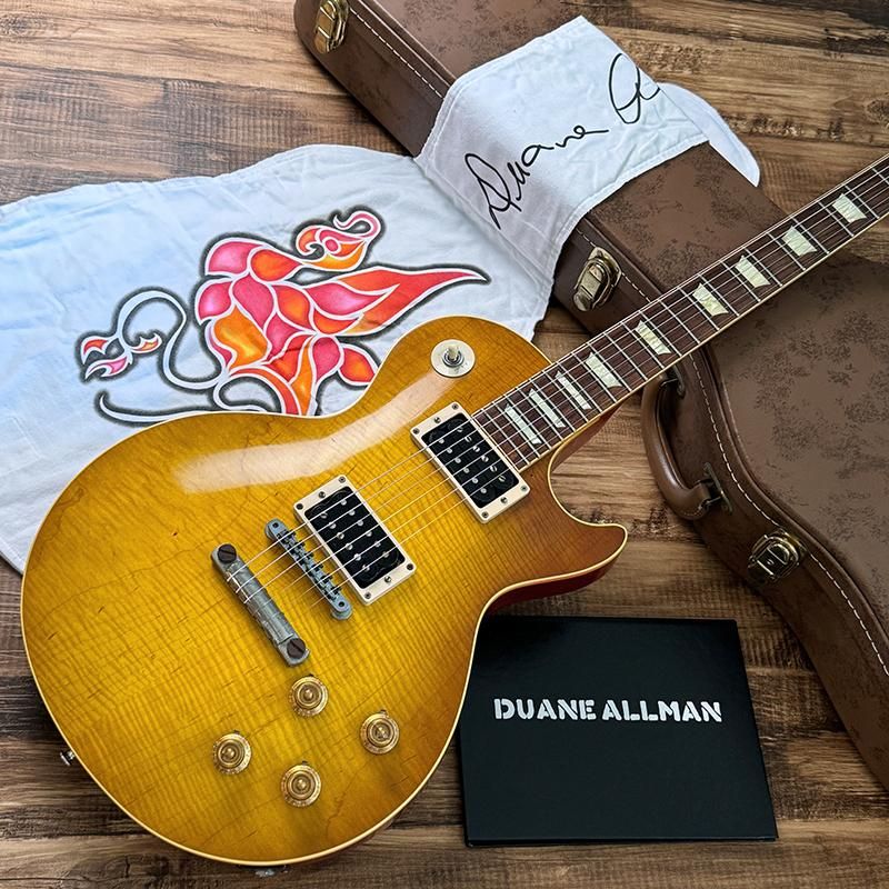 オールマンズでのデビュー時からメインで使用してきた1957年製ゴールドトップとのトレードで入手し、そのゴールドトップから移植された最初期のPAFの出力も再現しており、角度によってプレーントップに見えるハンドセレクテッド・メイプルトップに、現在の色味を再現したダブル・ダーティー・レモンのカラーリング、一般的な59バーストよりも僅かに薄めのネックシェイプ、シャーラー製ダブルリング・チューナー等ファンにはたまらない仕上がりを見せます。