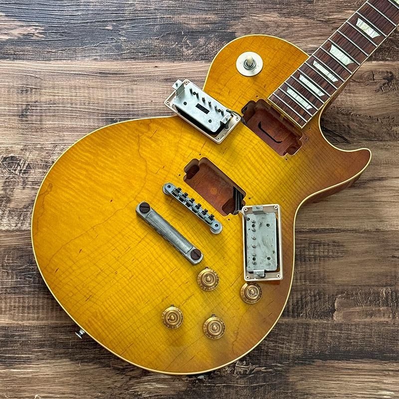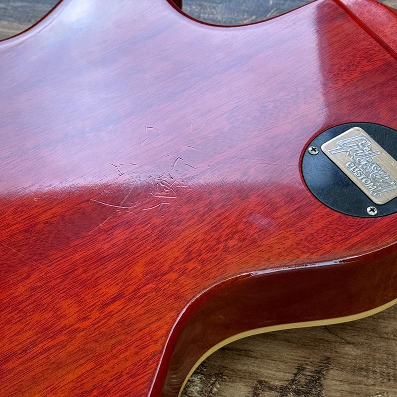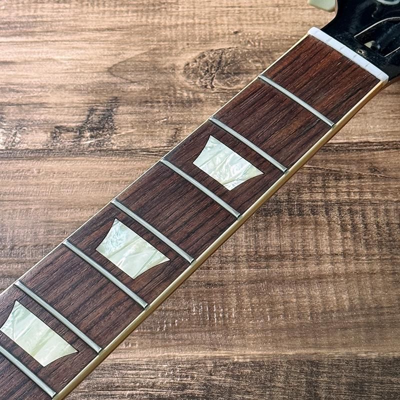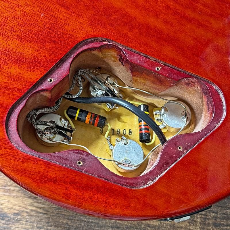 ボディバックのバックル傷やアニリンダイ・フィニッシュによるネック裏の退色、トゥルー・ヒストリック前のスペックでよく見られるコントロールノブ内部の割れ、ヘッドトップの線傷やポールピース、エスカッションネジの錆、全体的に細かい傷が見られますがネック、トラスロッドの状態は良好でフレットは8割以上残っているプレイコンディションの良い個体です。