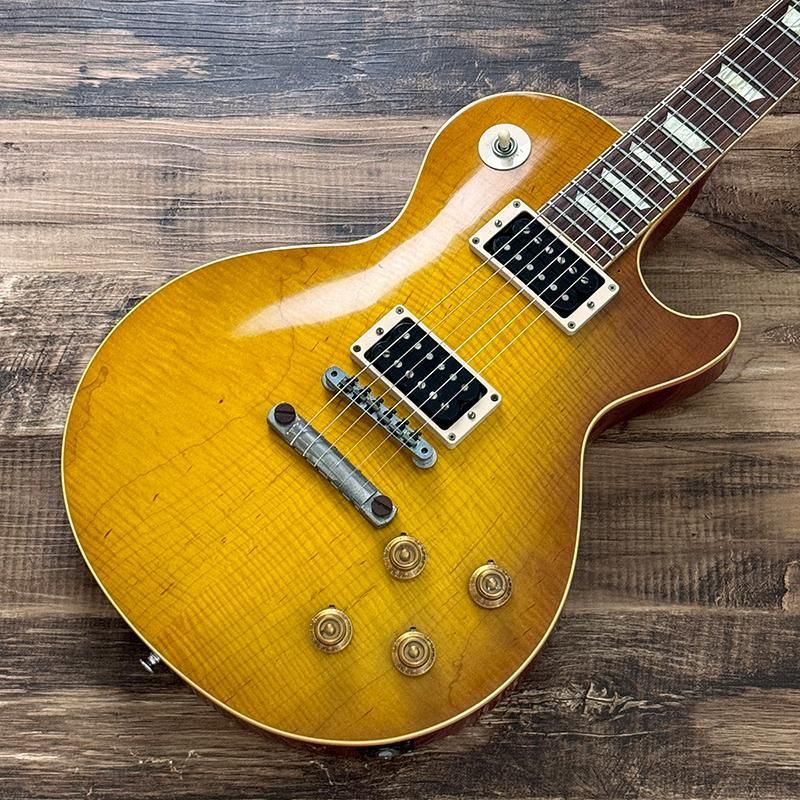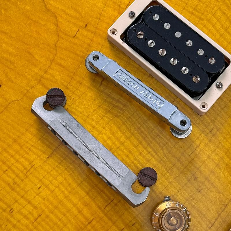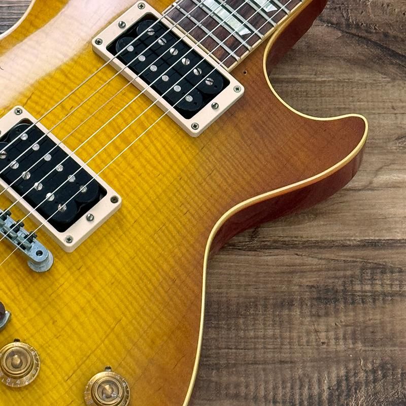 色味やトップの木目による雰囲気のあるルックスはもちろんのこと出力が低くくクリアなリアピックアップとリッチでメローなフロントピックアップはマーシャルやフェンダーアンプの組み合わせでまさにデュアン・オールマン好きであれば昇天できるコレクタブルな1本です。